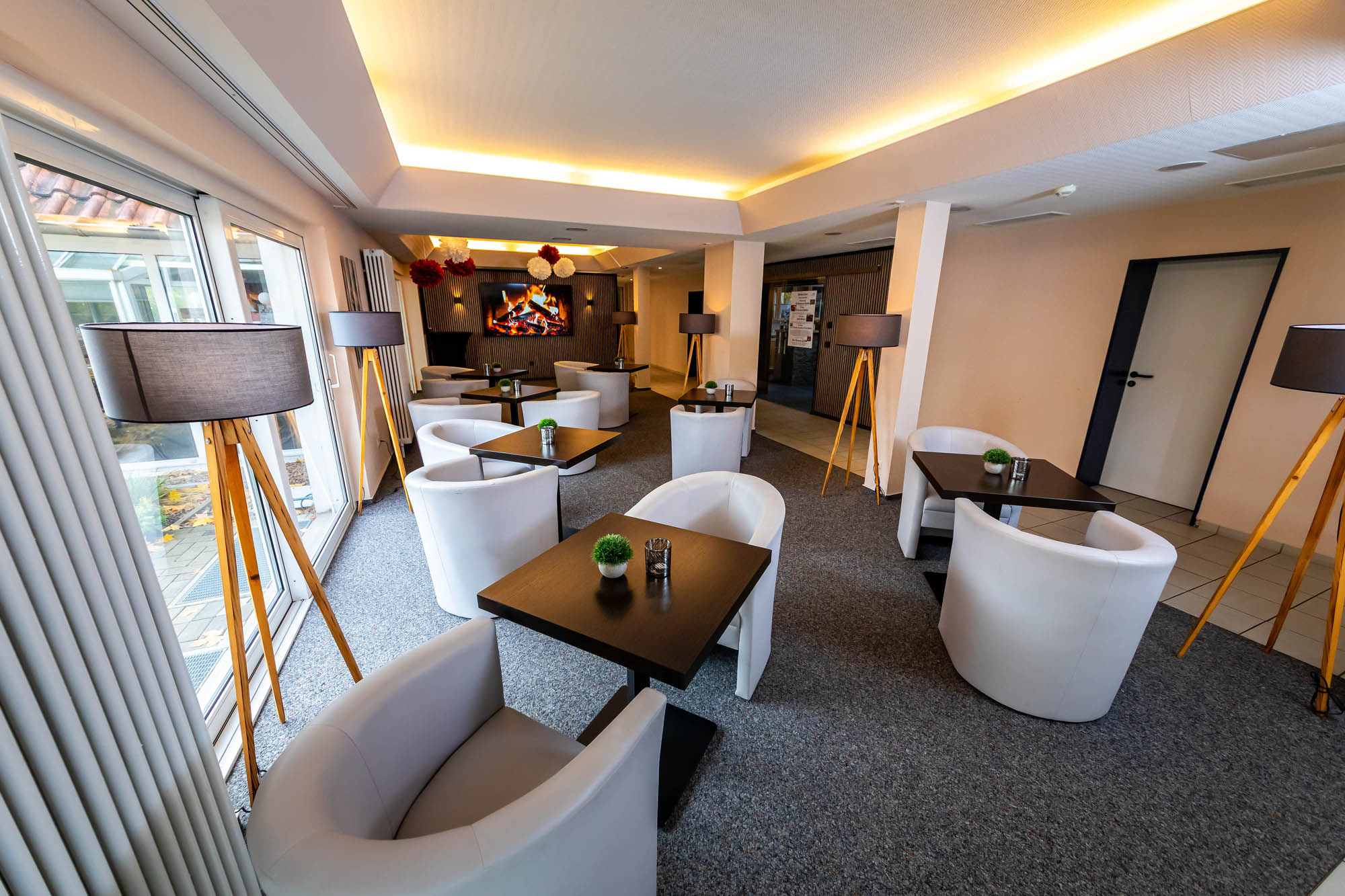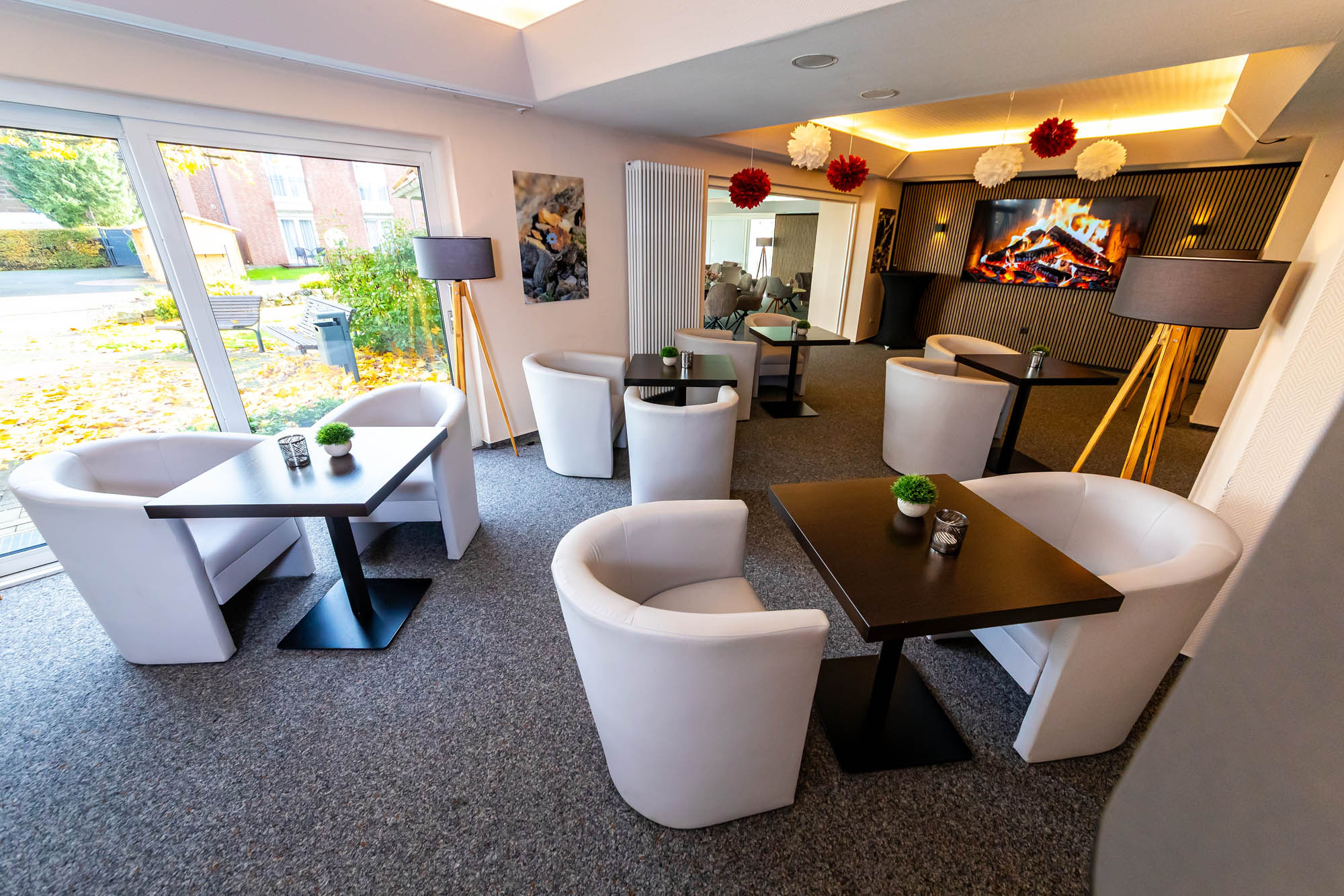 In warmen Farben und mit bequemen Möbeln ausgestattet, lädt die Lounge als offener Bereich im Erdgeschoss gegenüber der Lobby zum gemütlichen Zusammensitzen für kleine und große Gruppen ein. Unsere Bar bietet eine gute Auswahl an Bierspeziliatäten, ausgefallenen Cocktails und erlesenen Weinen an. Auch Alkoholfreies steht in vielen Variationen auf der Karte.
