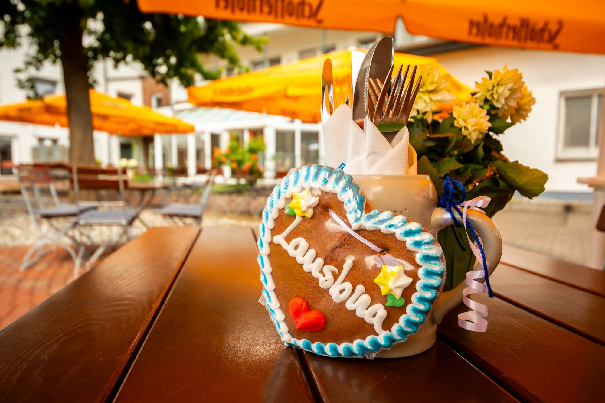 Bei schönem Wetter können Sie Ihren entspannten Abend in unserem bayerischen Biergarten inmitten romantischen Ambientes des hübschen Gartens ausklingen lassen. Dort steht auch eine Outdoor-Bar für erfrischende Getränke zur Verfügung.