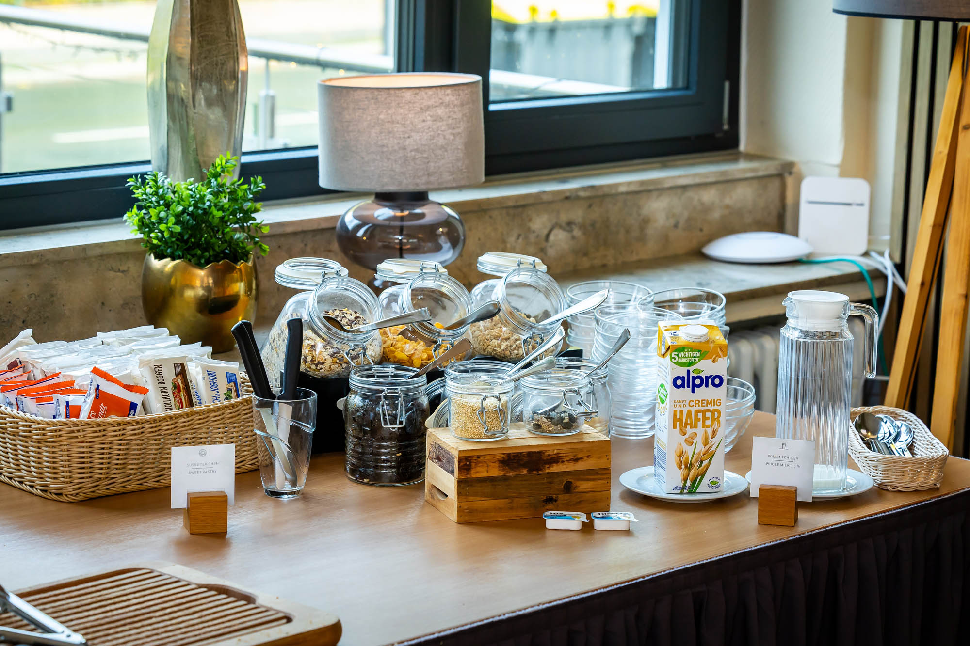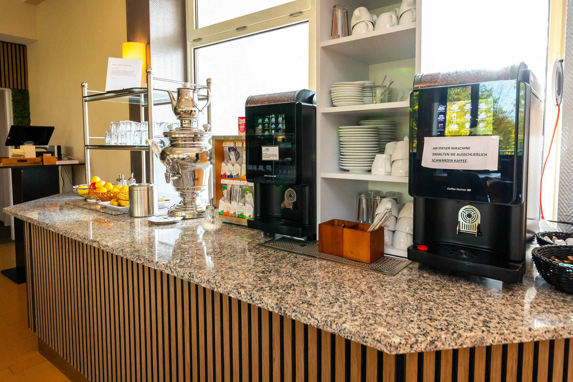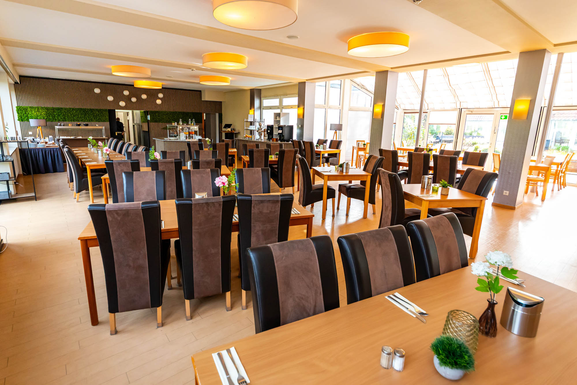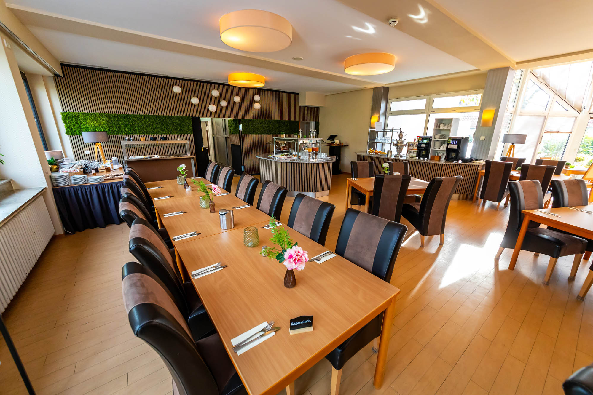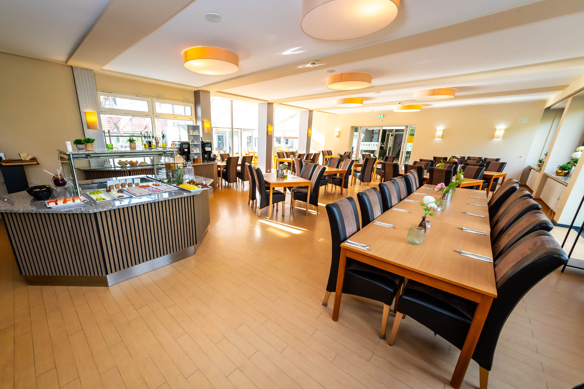 Unsere Hausgäste können morgens in unserem lichtdurchfluteten und stilvollen Restaurant ein reichhaltiges Frühstücksbuffet mit vielfältigen Kaffeespezialitäten genießen.