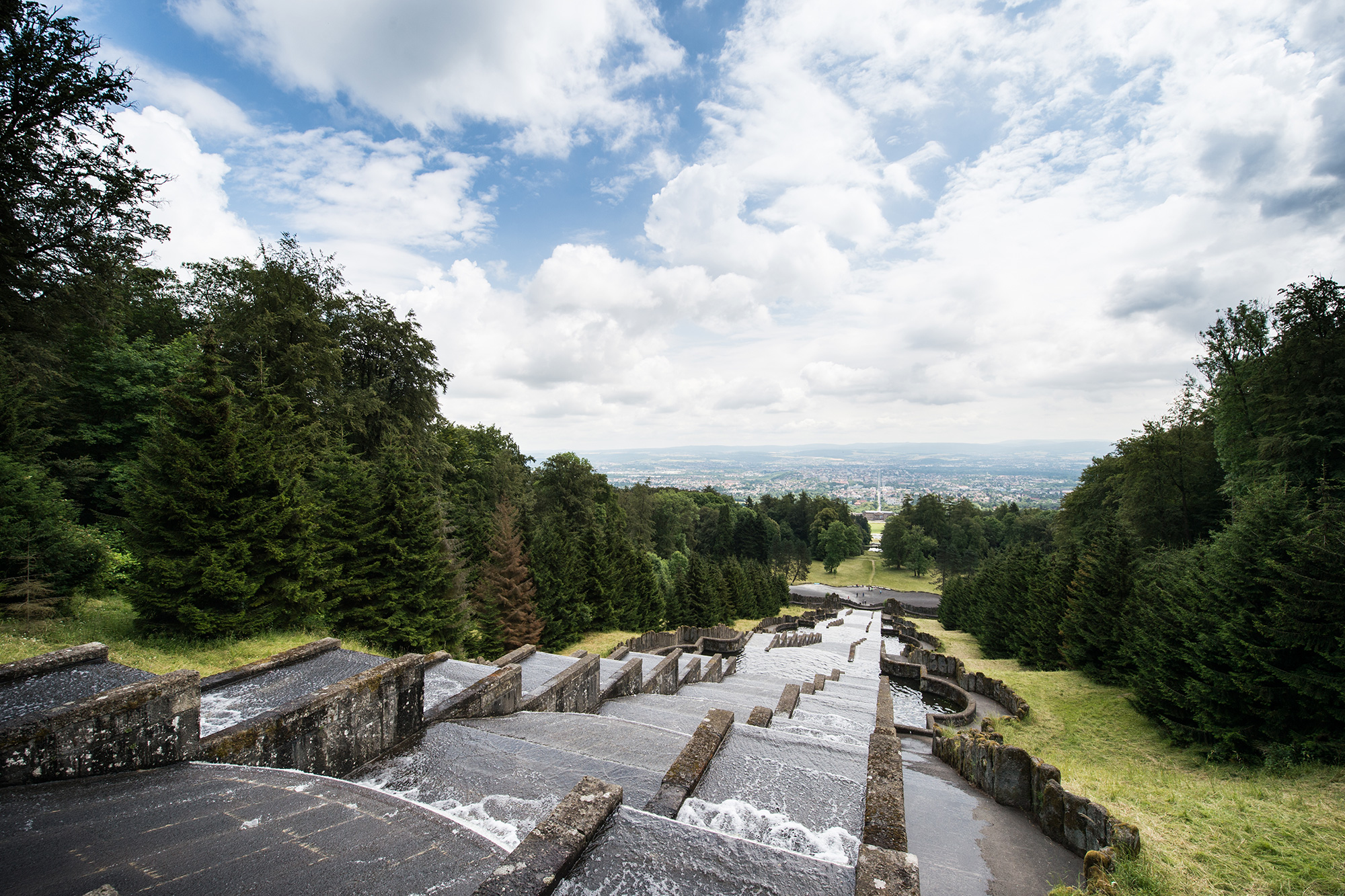 Die große Wasserkunst im Bergpark, die unter Landgraf Karl (reg. 1677-1730) entstanden ist, war eine architektonische und ingenieurtechnische Ausnahmeleistung ihrer Zeit und ist in ihrer Bedeutung ein Meilenstein der Kunst- und Gartengeschichte. Die barocken Anlagen mit Oktogon, Wassertheater und Kaskade sind durch ihre symmetrische und axiale Gestaltung als ideales Bild einer gewollten Künstlichkeit und sichtbaren Kunstfertigkeit zu verstehen. Das zu späterer Zeit (Ende des 18./Anfang des 19. Jahrhunderts) im Bergpark angestrebte englische Landschaftsbild verlangte das Wasser in seinen natürlichen Erscheinungen und integrierte es in den nach dem Vorbild der Natur gestalteten Landschaftspark. Landgraf Wilhelm IX. – der spätere Kurfürst Wilhelm I. – ließ über den gesamten Park verteilt mehrere Wasserfälle und Teiche, Bäche und Wassersprünge, einen See und ein Aquädukt mit tosendem Wasserfall erschaffen.